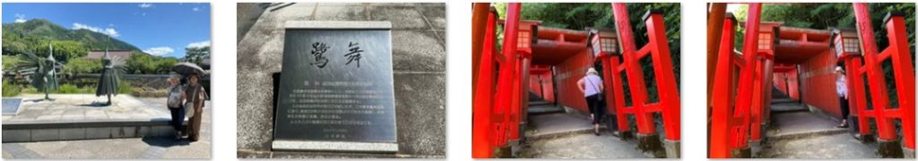 自販機横の店主が、店の奥から冷えたペットボトルのお茶を出してきてくれました。もちろんお支払いしましたよ。それで少し意識が戻って、鷺舞のモニュメント前でパチリ!! 「鷺舞」だが、まだ「鷺舞」ではない。動いていない、、、