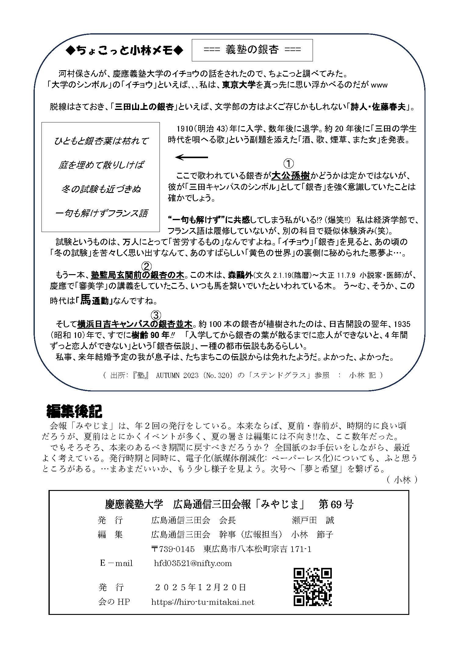 会報「みやじま」69号 - (2025年12月発行)